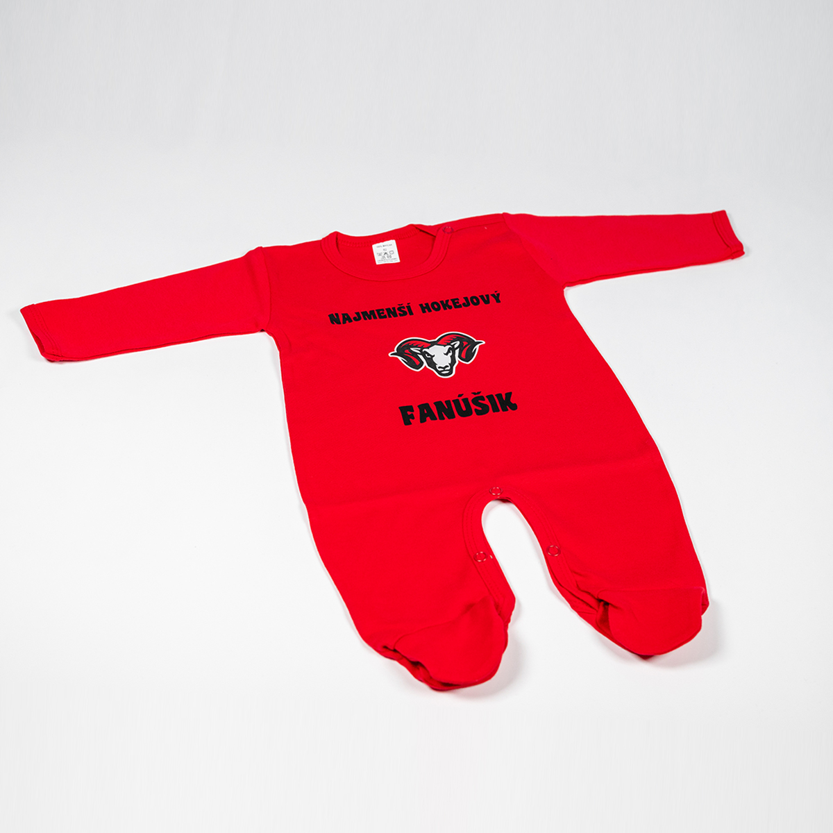 100% bavlna, zapínanie pri krku na 1 nit, zapínanie na nohách na 3 nity, znak na hrudi HC ’05