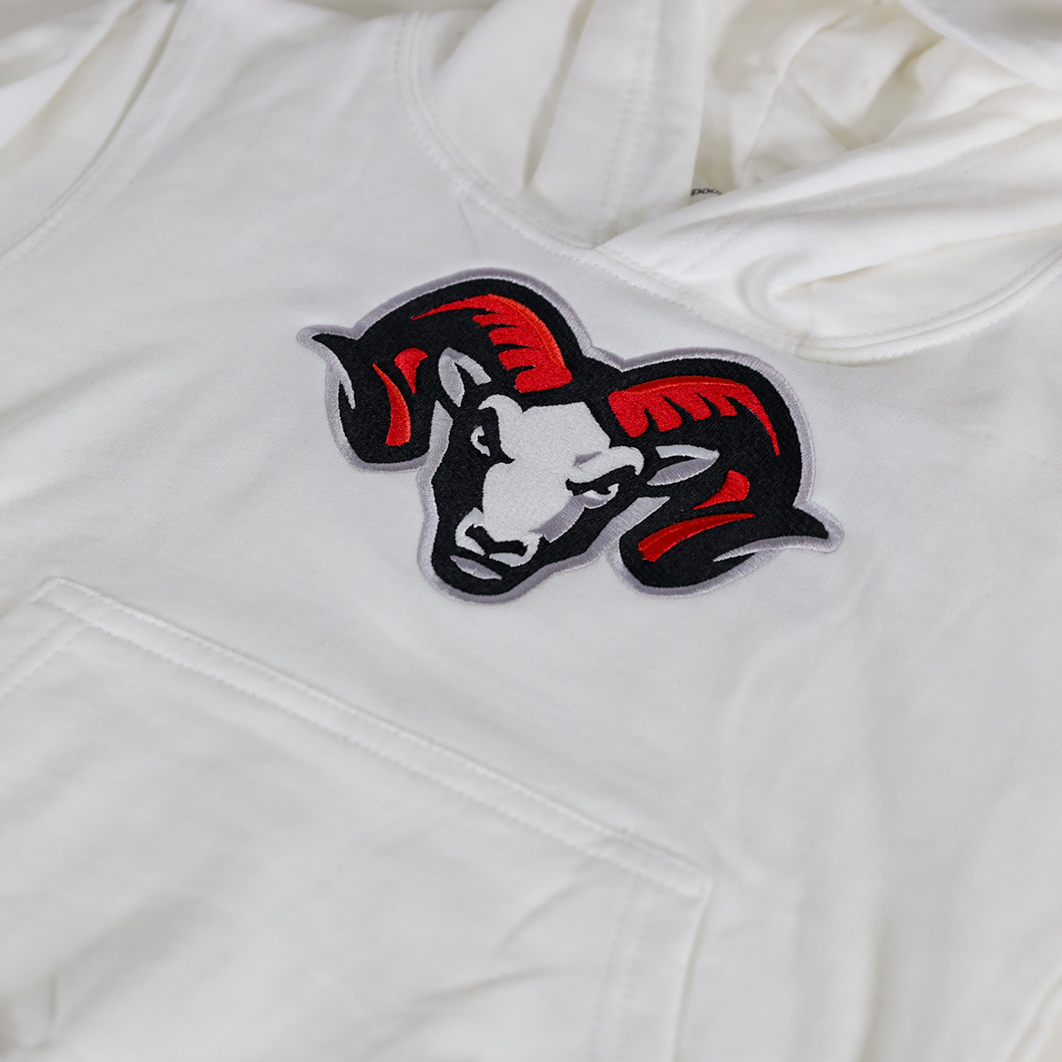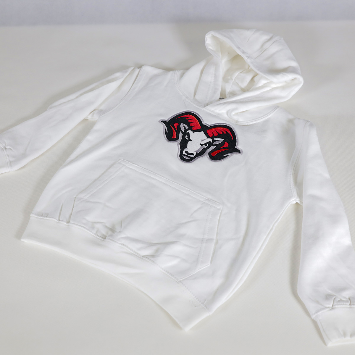 Klokanka detská s logom HC ’05 Banská Bystrica a nápisom „Barani“ na chrbte, biela.