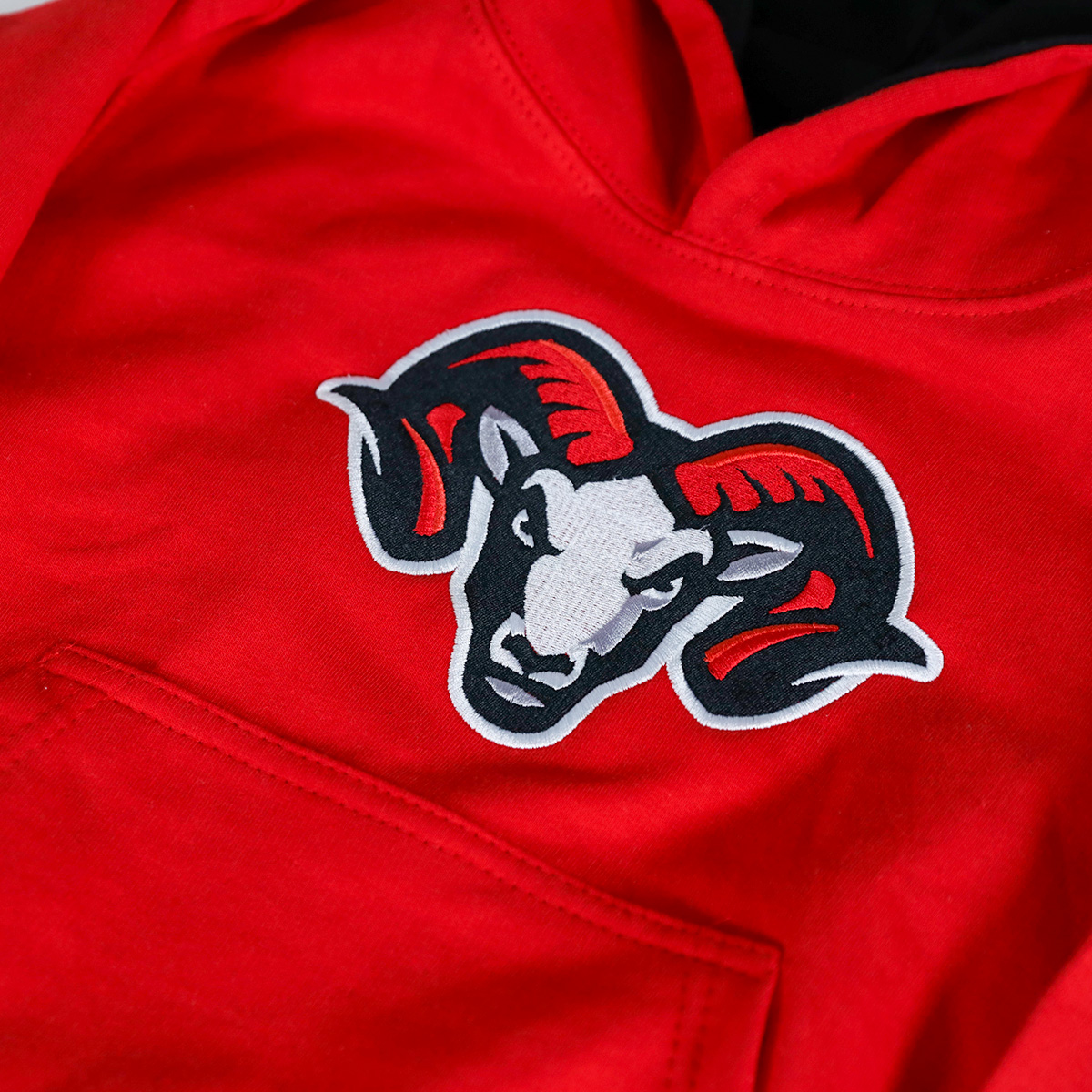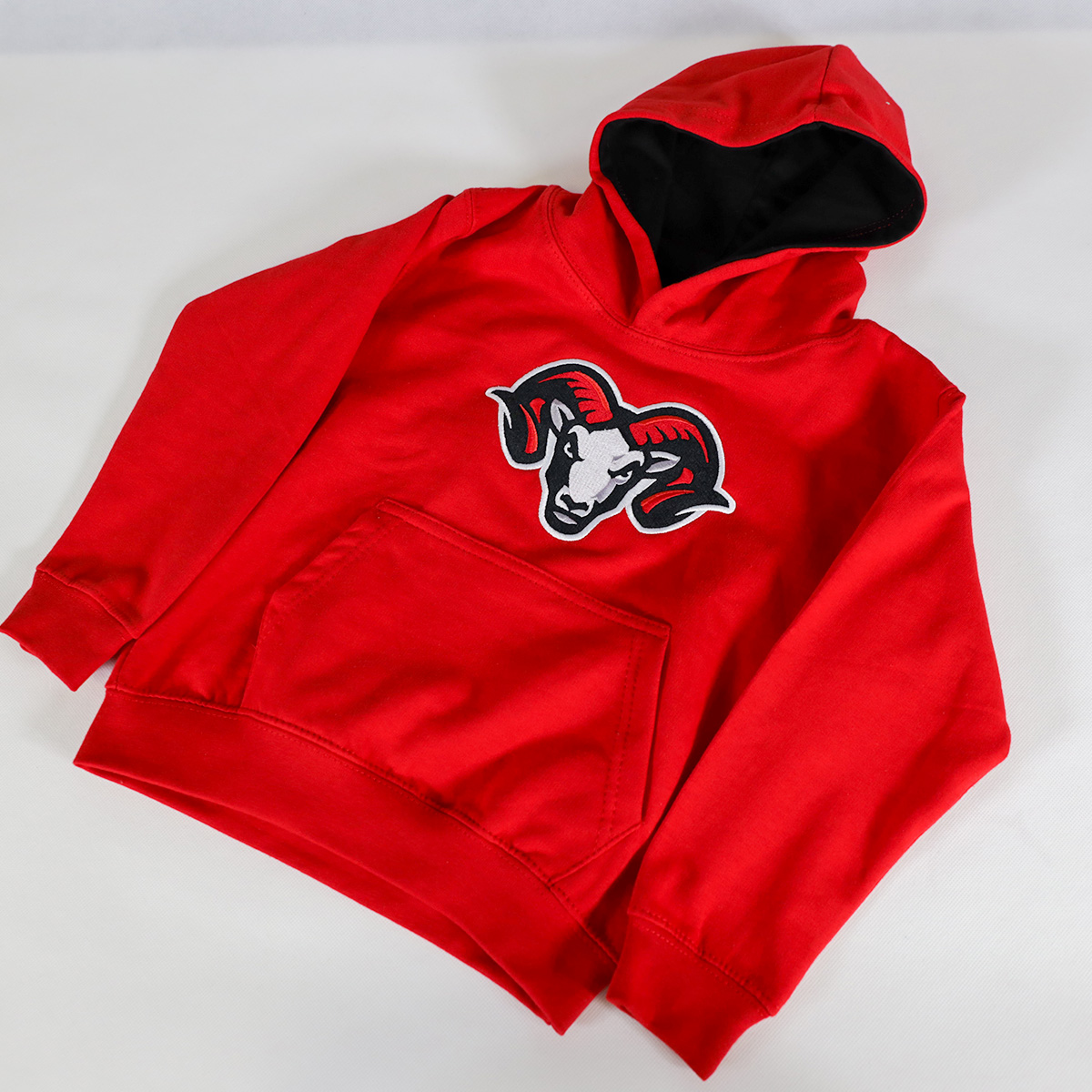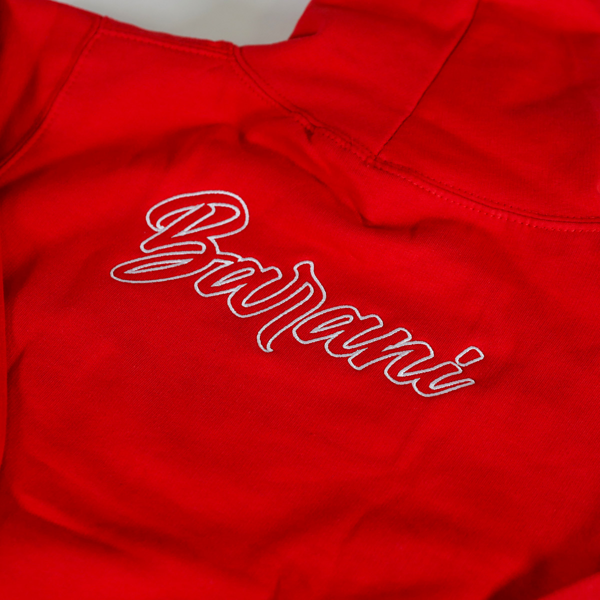 Klokanka detská s logom HC ’05 Banská Bystrica a nápisom „Barani“ na chrbte, červená.