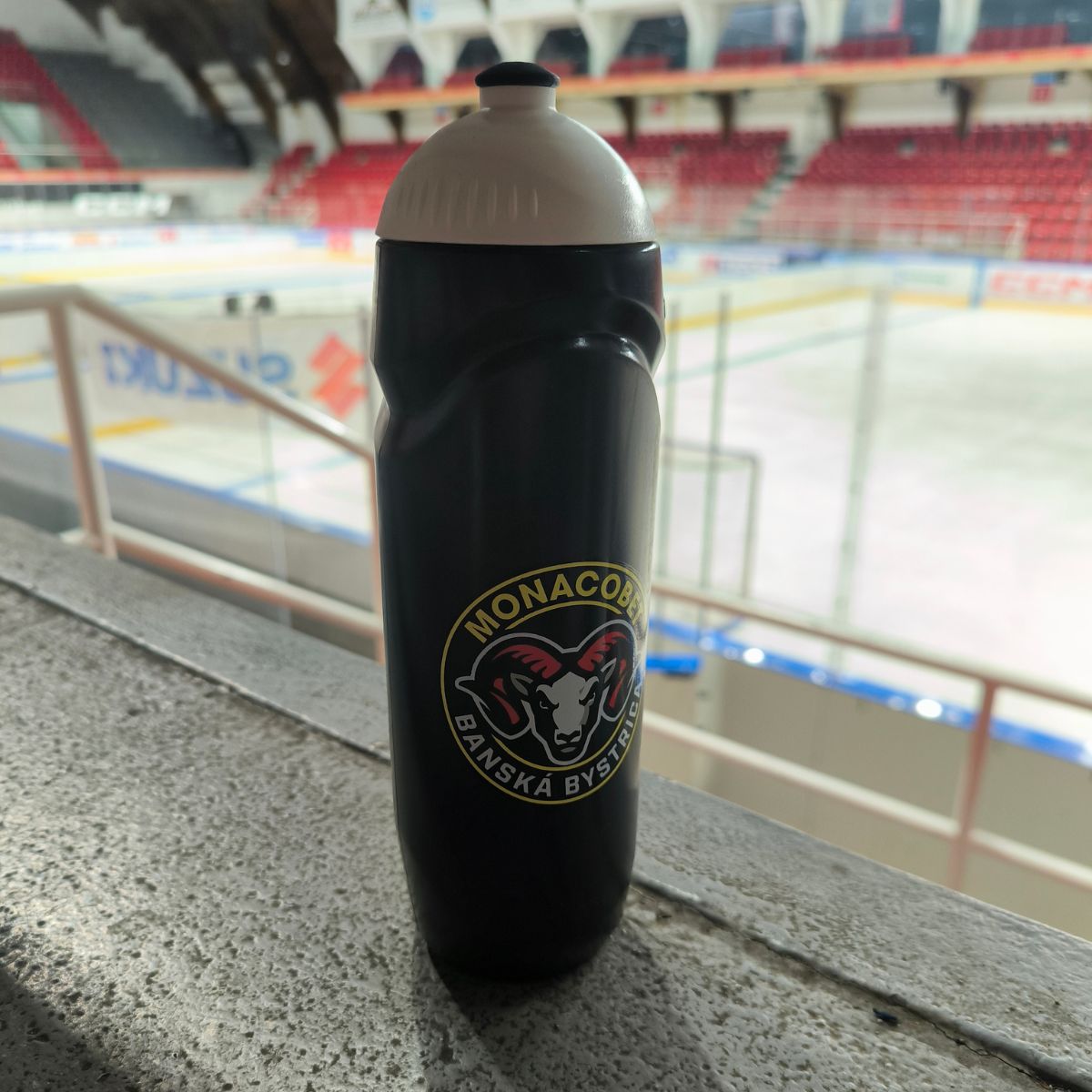 Športová fľaša HC MONACObet Banská Bystrica v dvoch farebných prevedeniach. Výrobca BiotechUSA s viečkom na pitie a objemom 0,75L.
