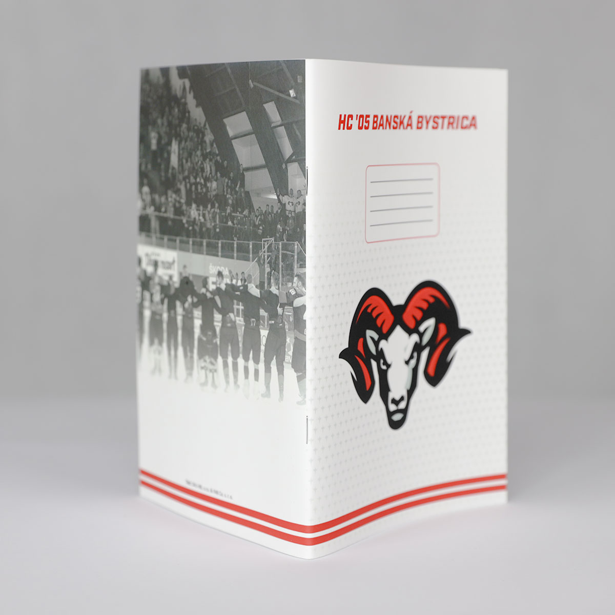 Zošit HC ’05 Banská Bystrica, formát A4 bielej farby, linajkový s okrajom