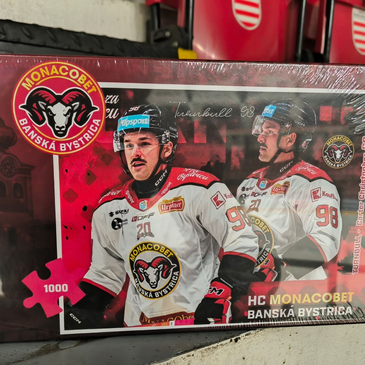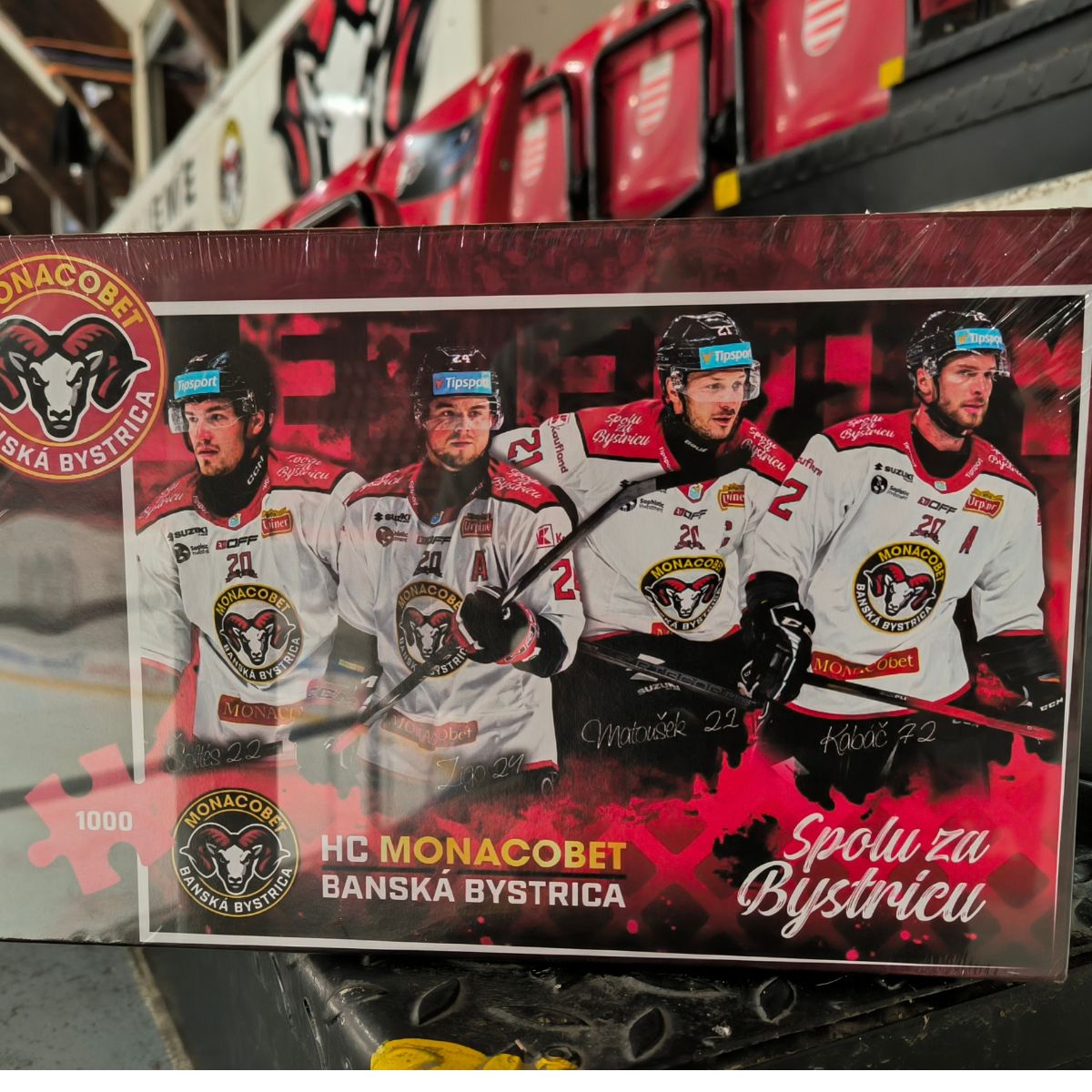 Puzzle HC MONACObet Banská Bystrica v troch prevedenia, vyrobené z tvrdeného kartónu v dizajnovej krabičke. 1000ks