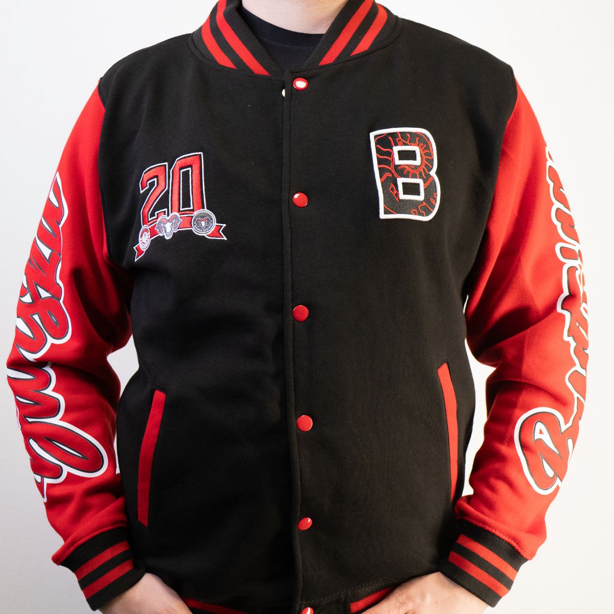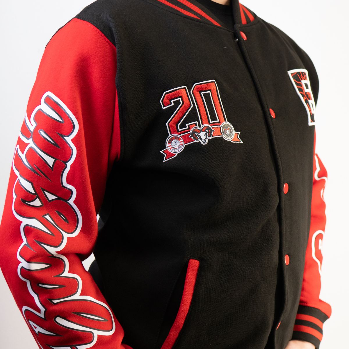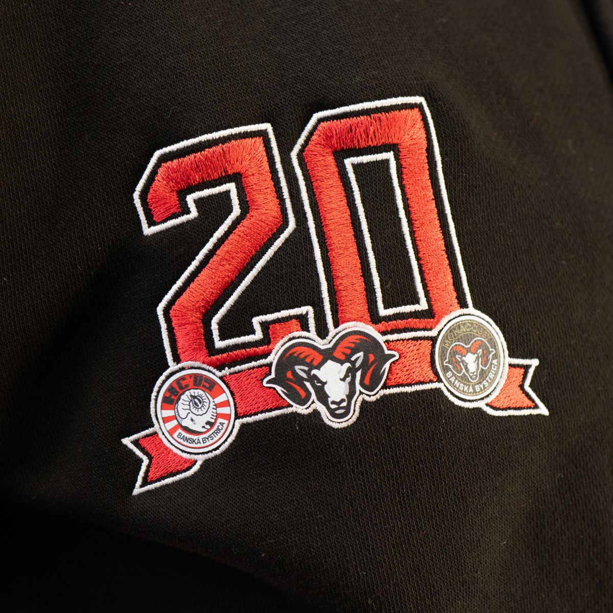 Moderná baseballová mikina s retro nádychom s bohatýmí výšivkami a potlačou symbolizujúcimi 20 rokov modernej histórie klubu spod Urpína. 70% bavlna, 30% polyester.
