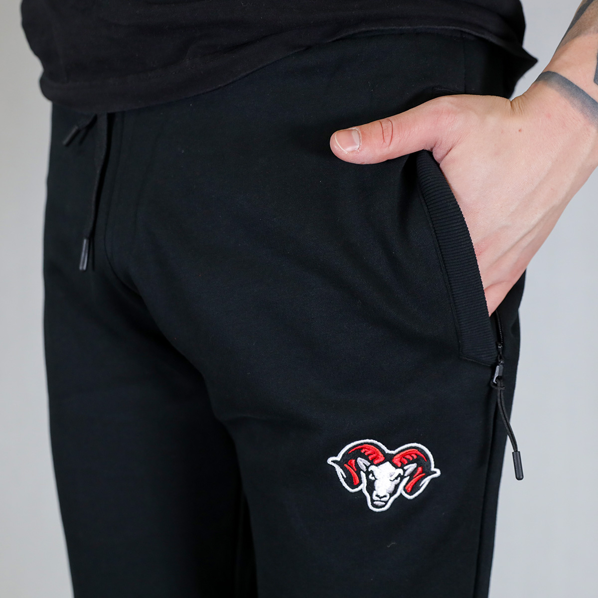 Tepláky bavlnené unisex s vyšitým logom HC ’05 Banská Bystrica, čierne.