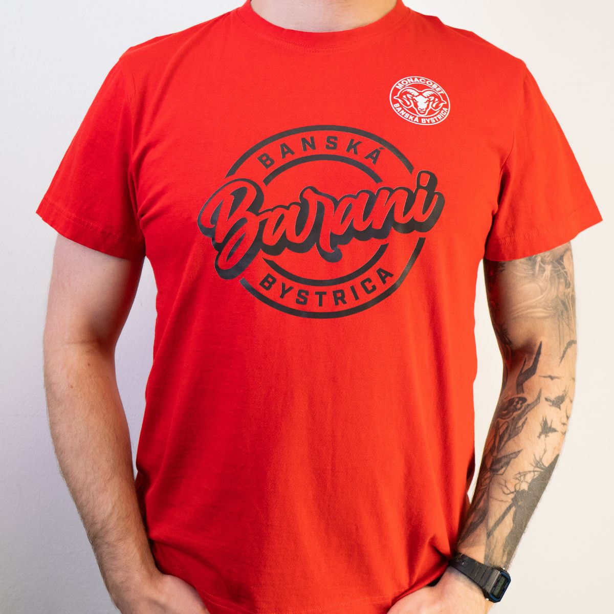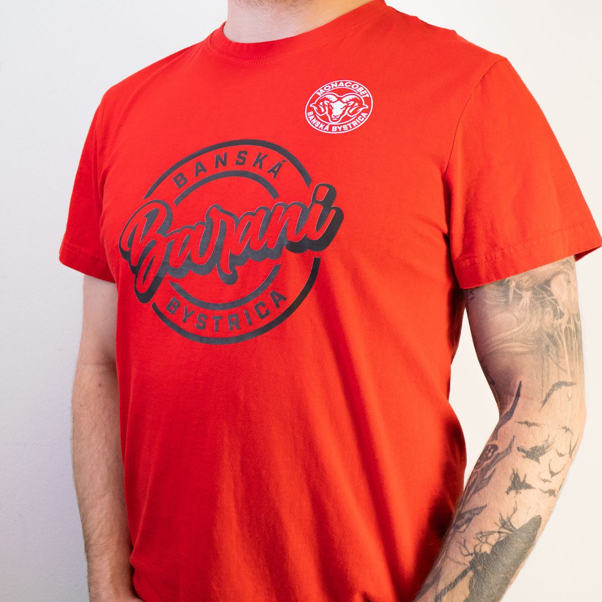 Pánske tričko s logom Barani, v červenom prevedení. Vyrobené zo 100% organickej bavlny.